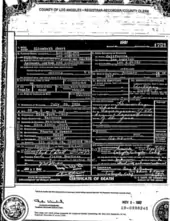 In late 1942, Short's mother received a letter of apology from her presumed-deceased husband, which revealed that he was in fact alive and had started a new life in California.[15] In December, at age 18, Short relocated to Vallejo to live with her father, whom she had not seen since she was six years old.[16] At the time, he was working at the nearby Mare Island Naval Shipyard on San Francisco Bay. Arguments between Short and her father led to her moving out in January 1943.[17] Shortly after, she took a job at the Base Exchange at Camp Cooke (now Vandenberg Air Force Base), near Lompoc, living with several friends, and briefly with an Army Air Force sergeant who reportedly abused her.[17] Short left Lompoc in mid-1943 and moved to Santa Barbara, where she was arrested on September 23, 1943, for underage drinking at a local bar.[18] The juvenile authorities sent her back to Medford,[lower-alpha 3] but she returned instead to Florida, making only occasional visits to Massachusetts.[21]