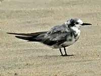 Hybridisation between this species and white-winged black tern has been recorded from Sweden[5] and the Netherlands.[6] Two juvenile birds at Chew Valley Lake, England, in September 1978 and September 1981, were also believed to be hybrids; they showed mixed characters of the two species, specifically a combination of a dark mantle (a feature of white-winged black) with dark patches on the breast-side (a feature of black tern, not shown by white-winged black).[7][8]