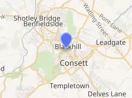 Blackhill and Consett Park is a park in Consett, County Durham, England.[1] The park along with Benfieldside Cemetery and a number buildings comprise the Blackhill conservation area.
