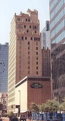 The Blackstone Hotel is the tallest hotel in downtown Fort Worth, Texas, at 268 ft (82 m) tall. Located on the corner of Fifth and Main Streets, it is noted for its Art Deco design with terracotta ornamentation and setbacks on the top floors. The hotel was constructed in 1929 and operated for over 50 years before it sat vacant for nearly 20 years. The Blackstone Hotel guest list is full of notable people including Presidents of the United States: Harry S. Truman, Dwight D. Eisenhower, John F. Kennedy, Lyndon B. Johnson, and Richard M. Nixon. The hotel was also host for a few movie stars such as Bob Hope, Clark Gable, and Elvis Presley. It was added to the National Register of Historic Places (Building #84001961) on February 2, 1984. The building was restored in the late 1990s and is still in use today as the Courtyard Fort Worth Downtown/Blackstone, although it is still known as the "Blackstone Hotel" to those who live in or have ties to Fort Worth.