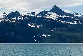 Blackthorn Peak, also known as Black Thorn, is a 4,117 foot (1,255 meter) mountain summit located at the head of Glacier Bay's Geikie Inlet in Glacier Bay National Park and Preserve, in the Fairweather Range of the Saint Elias Mountains, in southeast Alaska.[1] The mountain is situated immediately east of Geikie Glacier, 80 mi (129 km) west-northwest of Juneau, and 2.5 mi (4 km) north of Threesome Mountain, which is the nearest higher peak. Although modest in elevation, relief is significant since the mountain rises up from tidewater in a little over two miles. The mountain was given its descriptive name in 1896 by Harry Fielding Reid, an American geophysicist who studied glaciology in Glacier Bay.[1] Weather permitting, Blackthorn Peak can be seen from Glacier Bay, which is a popular destination for cruise ships. The months May through June offer the most favorable weather for viewing or climbing the peak.