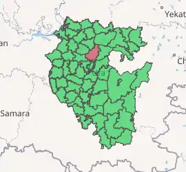 Blagoveshchensky District (Russian: Благове́щенский райо́н; Bashkir: Благовещен районы, Blagoveşçen rayonı) is an administrative[1] and municipal[7] district (raion), one of the fifty-four in the Republic of Bashkortostan, Russia. It is located in the northern central part of the republic and borders with Karaidelsky District in the north, Nurimanovsky District in the east, Ufimsky District in the south, Kushnarenkovsky District in the southwest, Birsky District in the west, and with Mishkinsky District in the northwest. The area of the district is 2,250 square kilometers (870 sq mi).[3] Its administrative center is the town of Blagoveshchensk[2] (which is not administratively a part of the district).[6] As of the 2010 Census, the total population of the district was 15,497.[4]
