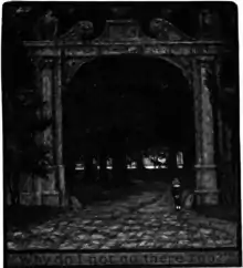 From Paris, she went to Chicago. She took a studio, and exhibited at the Chicago Art Institute: Holland spinners, French boulevards, an occasional portrait, notable for tone and balance. These the critics praised and the public knew not of. Inevitably she experimented in many means of expression: etchings, monotypes, pastels. One of these went into Hamilton McCormick's collection. Twelve small designs were included in a calendar zinc-etched in colors. The pictures were about the size, shape, and style of tiles. Five-inch squares with romantic subjects heavily outlined and colored in flat washes. They had nothing to do with the seasons and the holidays beyond a certain feeling for the appropriate. Thus March was a knight-errant riding a white charger over bare brown hills; April was a green-mantled Elizabethan dame beating her way against a shower in a narrow street of half-timbered houses; July showed two lovers floating in a gondola past the marble steps of an Italian garden, the swain singing rapturously to his lute. And so on. No special Christmas or Valentine's Day or Fourth of July business. Perhaps the absence of these timeworn themes was welcome. Perhaps the public really recognized a fresh and individual touch. Anyhow that calendar had "an immense little success." From a few leaflets sent across the ocean to la bonne Henriette in her cremerie certain rising French artists even wrote to America for more. Max Liebermann, the leader of the German Secession, praised them. Actually they were the turning-point for their creator from pictorial to decorative art.[1]
