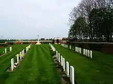The cemetery was begun in November 1914 by the French Chasseurs Alpins. British burials began in February 1915.[2] The cemetery closed in November 1916, [3] with the French graves being removed after the armistice.[4]