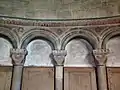 A blind arcade or blind window is an arcade that is composed of a series of arches that has no actual openings and that is applied to the surface of a wall as a decorative element: i.e., the arches are not windows or openings but are part of the masonry face.[1] It is designed as an ornamental architectural element and has no load-bearing function. Whereas a blind arch is usually a single arch or a series of joined arches as a frieze (sometimes called Lombard band), a blind arcade is composed of a series of arches that have well-defined columns.