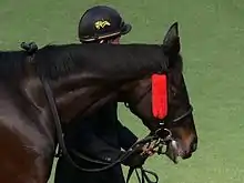 Blinkers, sometimes known as blinders, are a piece of horse tack that prevent the horse seeing to the rear and, in some cases, to the side.[1]