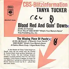 "Blood Red and Goin' Down" is a song written by Curly Putman, and performed by American country music artist Tanya Tucker. It was released in June 1973 as the second single from Tucker's album What's Your Mama's Name. The single was Tucker's second number one on the country chart and would stay at number one for a single week and spend a total of twelve weeks on the chart.[1]