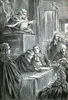 There were five judges – Sir William Montague (Lord Chief Baron of the Exchequer),[1] Sir Robert Wright,[1] Sir Francis Wythens (Justice of the King's Bench),[1] Sir Creswell Levinz (Justice of the Common Pleas)[1] and Sir Henry Pollexfen, led by Lord Chief Justice George Jeffreys.