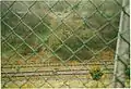 Blowers Green station forecourt in 2002. It has been fenced off since 2004 due to youths' anti-social behaviour, structural decay and periodical use by vagrants.
