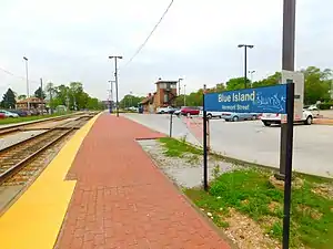 Blue Island–Vermont Street is a Metra station in Blue Island, Illinois, servicing the Rock Island District and Metra Electric Lines. On the Rock Island, it is 16.4 miles (26.4 km) from LaSalle Street Station.[2] For the Metra Electric, it is the southern terminus of the Blue Island Branch.