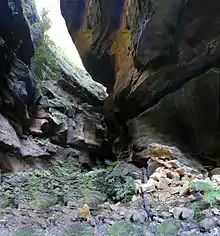 There are numerous abseiling options available in the Blue Mountains including single and multipitch routes. There are some restrictions though with certain areas being closed for abseiling.[46]