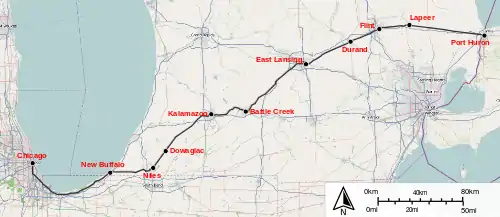 - Amtrak Chicago–Detroit Line, Porter, Indiana, to Kalamazoo, Michigan