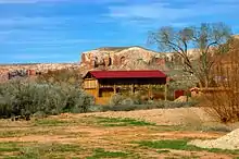 Under the direction of John Taylor, Silas S. Smith and Danish settler Jens Nielson led about 230 Mormons on expedition to start a farming community in southeastern Utah. After forging about 200 miles (320 kilometers) of their own trail over difficult terrain, the settlers arrived on the site of Bluff in April 1880.[6] (The trail followed went over and down the "Hole in the Rock", which now opens into one of the tributaries of Lake Powell.) The town was named for the bluffs near the town site.[7] The town's population had declined to seventy by 1930 but rebounded during a uranium prospecting boom in the 1950s.[6] With the uranium decline in the 1970s Bluff again declined and now remains a small town with about 200 residents.