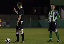 Paul Brayson lines up a free kick for Blyth