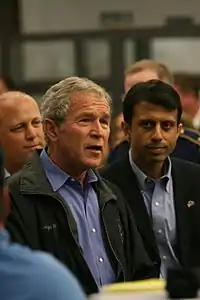 In 2005, Jindal criticized Bush's budget for not calling for enough spending cuts.[44] He warned of the growth of Medicaid saying "Congress may act without them...there seems to be growing momentum that the status quo is not defensible."[45] Jindal praised Bush's leadership on social security reform saying "The administration has a lot more work to do to continue educating the American people about the very serious challenges facing Social Security."[46]