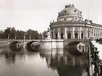 The Bode-Museum (English: Bode Museum), formerly called the Kaiser-Friedrich-Museum (Emperor Frederick Museum), is a listed building on the Museum Island in the historic centre of Berlin and part of the UNESCO World Heritage. It was built from 1898 to 1904 by order of German Emperor William II according to plans by Ernst von Ihne in Baroque Revival style. The building's front square featured a memorial to German Emperor Frederick III, which was destroyed by the East German authorities.[1] Currently, the Bode-Museum is home to the Skulpturensammlung, the Museum für Byzantinische Kunst and the Münzkabinett.[2]