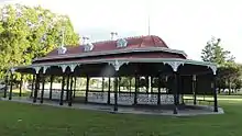 The public quickly saw the value of an area reserved for recreation and took advantage of the cleared ground to build a cricket pitch. Attending concerts in the park became a favourite evening pastime as well. As the popularity of attending social and musical events in the park grew, the Lissner Park Committee, set up to raise funds to oversee the development of the reserve, suggested that a Band Pavilion Fund be established to pay for the construction of a pavilion. In 1889, Charters Towers architect William George Smith jnr, designed a structure which cost £250 to build. The design was octagonal with a 48 feet (15 m) diameter platform in the centre for the band. Around this stage there was space for dancing or for seating. The corrugated iron roof was supported by ornamental iron pillars and provision was made in the design for curtains to be let down to protect the band if rain fell.[1]