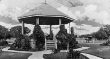 Photographic evidence indicates that a bush house, which no longer exists, was constructed in April, 1891. A "tin" fountain, installed prior to 1910, was removed from the park in 1964 or 65 when the Lions Club built a ceramic tiled fountain. The original tin fountain, which no longer works, has recently been returned to the park. A small lake was constructed in 1911 and the toilets and lighting were extended in 1912.[1]