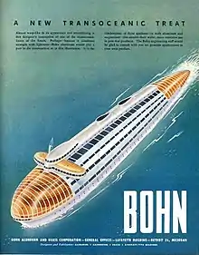 Characteristic futuristic Bohn advertisement showing a streamlined ocean liner. Metal Progress, 1946.[1]
