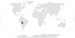 The Bolivia–Georgia relations are the diplomatic relations between the Plurinational State of Bolivia, in South America, and Georgia, in Europe.