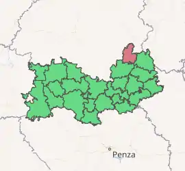 Bolsheignatovsky District (Russian: Большеигна́товский райо́н; Erzya: Покш Игнадбуе; Moksha: Оцю Игнатовань аймак) is an administrative[1] and municipal[6] district (raion), one of the twenty-two in the Republic of Mordovia, Russia. It is located in the northeast of the republic. The area of the district is 834.2 square kilometers (322.1 sq mi).[3] Its administrative center is the rural locality (a selo) of Bolshoye Ignatovo.[2] As of the 2010 Census, the total population of the district was 8,313, with the population of Bolshoye Ignatovo accounting for 34.2% of that number.[4]