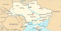 The Boltysh crater or Bovtyshka crater is an impact crater in the Kirovohrad Oblast of Ukraine,[1] near the village of Bovtyshka. The crater is 24 kilometres (15 mi) in diameter and its age of 65.17 ± 0.64 million years, based on argon dating techniques, is within error of that of Chicxulub crater in Mexico and of the Cretaceous–Paleogene boundary (K–Pg boundary). The Chicxulub impact is believed to have caused the mass extinction at the end of the Cretaceous period, which included the extinction of the non-avian dinosaurs. The Boltysh impact likely occurred several thousand years after Chicxulub, suggesting the extinction event may have been driven by multiple meteor strikes over an extended period of time about 65 million years ago.[2]