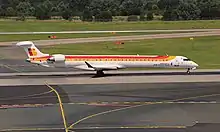 The Bombardier CRJ (for Canadair Regional Jet) is a family of regional jets introduced in 1991 by Bombardier Aerospace. The CRJ was formerly manufactured by Bombardier Aerospace with the manufacturing of the first CRJ generation, the CRJ100/200 (introduced in 1991) and the second CRJ generation, the CRJ700 series (introduced in 1999). The CRJ programme was acquired by Japanese corporation Mitsubishi Heavy Industries (MHI RJ Aviation Group) in a deal that closed 1 June 2020. Bombardier subsequently completed assembly of the order backlog on behalf of Mitsubishi.[3]