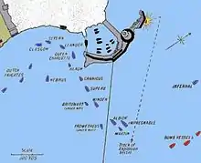 The day before the attack, the frigate Prometheus arrived and its captain W. B. Dashwood attempted to secretly rescue the British Consul and his wife and infant. Some of the rescue party was discovered and arrested. The plan of attack was for the larger ships to approach in a column. They were to sail into the zone where the majority of the Algerian guns could not be brought to bear. Then, they were to come to anchor and bombard the batteries and fortifications on the mole to destroy the defences. Simultaneously, HMS Leander—50 guns—was to anchor off the mouth of the harbour and bombard the shipping inside the mole. To protect Leander from the shore battery, frigates HMS Severn and Glasgow were to sail inshore and bombard the battery.[13] Troops would then storm ashore on the mole with sappers of the Corps of Royal Engineers.[14]:392