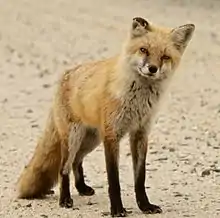 The variety of habitats in the refuge provides food and cover for a number of other species. Thirty-five mammal species have been identified on the refuge; however, additional species native to the region probably are present but have not as yet been verified. Those most frequently seen, especially in the early morning and the late afternoon, are the cottontail rabbit, woodchuck, gray squirrel, red fox, and white-tailed deer.[4] Other animals found in the refuge include salamanders, toads, frogs, turtles, lizards, and snakes.[5] Other mammals that inhabit this refuge are beavers, muskrats, river otters, and opossums.
