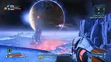 Gameplay in The Pre-Sequel is similar to Borderlands 2, but with the addition of new mechanics. Two varieties of items have been added, including laser guns, and items possessing a cryogenic elemental effect, which can be used to slow down and freeze enemies. Enemies that are frozen can be smashed into pieces by using melee attacks. The game features low-gravity environments, causing players to jump higher but slower, and items such as loot and dead bodies to float away. O2 kits are added to supply air while in space; oxygen supplies can be replenished using generators, vents, and through oxygen tank items dropped by enemies. The kits can be used like a jetpack to perform double jumps, hovering, and ground slamming attacks; as with other items, different types of O2 kits can provide stat bonuses and affect how ground slams deal damage.[4][5][6] A new "Grinder" machine allows players to deposit combinations of existing weapons to receive one of higher rarity.[7] Vehicles were introduced, including a moon buggy, and the "Stingray"—a type of hoverbike.[7]