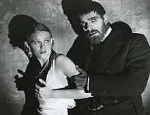He married six times and had one child, daughter Sara Karloff, by fifth wife Dorothy Stine.[29] His final marriage was in 1946 right after his fifth divorce.[30][31] At the time of his daughter's birth, he was filming Son of Frankenstein and reportedly rushed from the film set to the hospital while still in full makeup.[32]