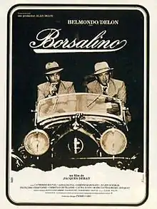 Borsalino is a 1970 French gangster film directed by Jacques Deray and starring Alain Delon, Jean-Paul Belmondo and Catherine Rouvel. It was entered into the 20th Berlin International Film Festival.[4] In 2009 Empire magazine named it #19 in a poll of "The 20 Greatest Gangster Movies You've Never Seen… Probably". A sequel, Borsalino & Co., was released in 1974 with Alain Delon in the leading role. The film is based on real life gangsters Paul Carbone and François Spirito, who collaborated with Nazi Germany during the occupation of France in World War II (though this is not mentioned in the film).[5]