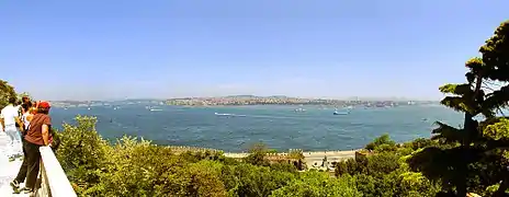 View of the entrance to the Bosphorus from the Sea of Marmara, as seen from the Topkapı Palace.