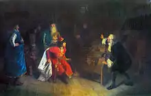 The botik (small boat) was constructed, either in England or by Danes in Russia using an English design, in the 1640s,[1] and was then called the St. Nicholas.[2] The boat originally belonged to Peter the Great's grandfather;[3] an earlier theory held that the boat was a gift from Queen Elizabeth to Ivan the Terrible in the 1580s.[4] It is the last remnant of the fleet of wooden boats maintained by Peter's father, Alexis; the rest rotted from neglect or were destroyed during the rebellion of Stenka Razin.[5]