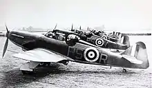 In the air-sea rescue role, the Defiant was the intended replacement for the Westland Lysander in shallow air-sea rescue units.[15] In order for this task to be performed, Defiants in this capacity were equipped with a pair of underwing pods that each contained two M-type dinghies. In March 1942, No. 281 Squadron formed at RAF Ouston, Northumberland, partially operating Defiant Mk Is; four more squadrons received the type within the next two months.[47] However, six months following their introduction to the role, the Defiant had proved to be a poor choice for the role, in part due to the aircraft already been worn out by their previous service, which limited the sortie rate; other issues included its high stalling speed and wide turning radius.[15] By the end of 1942, the Defiant had been phased out of the air-sea role.[47]