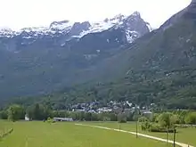 Bovec is the site of a mass grave associated with the Second World War. The Cemetery Mass Grave (Slovene: Grobišče na pokopališču) is located next to the entrance to the town cemetery. It contained the remains of 11 German soldiers killed between 1941 and 1945. The names of all of them are known. The grave was exhumed in 2000 and the remains were transferred to Žale Cemetery in Ljubljana. Unlike most mass graves in Slovenia, the grave was well maintained during the communist era with funds provided by the German War Graves Commission. The mass grave is marked by a plaque in Slovene and German.[8]