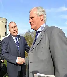 Boyko Metodiev Borisov (Bulgarian: Бойко Методиев Борисов, IPA: [ˈbɔjko mɛˈtɔdiɛf boˈrisof]; born 13 June 1959) is a Bulgarian politician who has been Prime Minister of Bulgaria since May 2017.[1] He was also Prime Minister from 2009 to 2013 and from 2014 to January 2017, making him Bulgaria's second-longest serving Prime Minister to date.