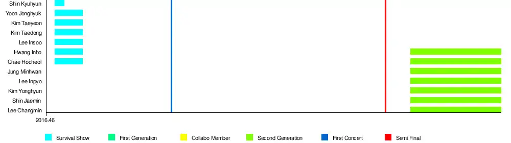 The survival show with the same name as the group was a 2016 reality boy group unit survival show that aired every Saturday 10pm on Mnet and tvN. It was a large-scale project in which the units of a selected number of members would be produced from a pool of 49 free-agents.[44]