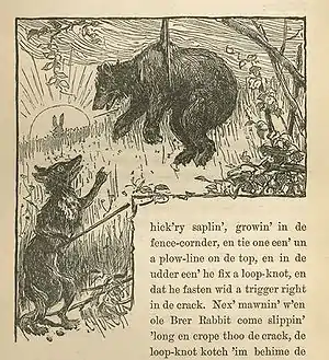 "Br'er Rabbit Earns a Dollar a Minute" is a traditional African American folktale, featuring Br'er Rabbit, Br'er Fox and Br'er Bear. It is famous for its inclusion among Joel Chandler Harris' Uncle Remus stories.[1] Although its folk roots most likely trace back to ancient Africa, the folktale's first written appearance was as a chapter titled "Mr. Rabbit and Mr. Bear" in Uncle Remus: His Songs and Sayings, published in 1881.