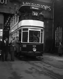 While investment in the tramway continued in the 1920s, a strike by tramways staff in 1926 had allowed private bus operators into the city and highlighted the shortcomings of the tramway system. When worn tramway tracks were due for repair in 1928, a replacement of the tram by trolleybuses was suggested, which was to cost only one quarter of the cost of completely renewing the track. Although the official policy still provided for all three forms of transport in Bradford, plans were already made to replace the tramcars. The Allerton tram line was replaced by trolleybuses in 1919, causing some older tramcars to be withdrawn. In 1930 the trams on the Thackley and Saltaire route were replaced by trolleybuses, and by 1931 construction of tramcars had ceased. Much of the tram system had closed in 1939, and the remainder was to be abandoned in the following years. The onset of World War II delayed the plans. Motor bus services were affected by restrictions in fuel, while the tram and trolleybus services continued normally. After the war, the remaining tram lines were closed, and the last Bradford tramcar (No. 104) returned to Bankfoot depot for the final time on 6 May 1950.[2]