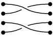 In this introduction let n = 4; the generalization to other values of n will be straightforward. Consider two sets of four items lying on a table, with the items in each set being arranged in a vertical line, and such that one set sits next to the other. (In the illustrations below, these are the black dots.) Using four strands, each item of the first set is connected with an item of the second set so that a one-to-one correspondence results. Such a connection is called a braid. Often some strands will have to pass over or under others, and this is crucial: the following two connections are different braids: