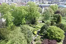 The upper part of the hill is a steep park, divided into informal gardens, a small nature reserve and open grassland. The two-hectare nature reserve has been run since 1980 by the Avon Wildlife Trust who have their headquarters beside the park. The wildflower meadow includes ox-eye daisies, yellow rattle and knapweed. A pond provides a breeding site for frogs, toads and smooth newts. The butterfly garden supplies food for caterpillars and many kinds of butterflies. Birds such as jay, bullfinch and blackcap are seen in the reserve. Native trees and shrubs have been planted, and the meadow is cut for hay in July.[4]