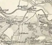 The origins of the name 'Bransford' are uncertain, but it is believed to mean 'hill-top ford' or 'ford at Bragen'. This is derived from 'braegen', old English for crown of the head or topographically a hill and then 'ford'.[4] In the Doomsday Book, Bransford was called Bradnesforde and included information about Urso from the Pershore Church and mill.[5] Bransford was home to Wulstan de Bransford, the Bishop of Worcester from 1338–49.[6] Following the Poor Law Amendment Act 1834 Bransford Parish ceased to be responsible for maintaining the poor in its parish, a responsibility transferred to Martley Poor Law Union.[7] In the 1870s, Bransford was described as