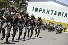 The Brazilian Army (Portuguese: Exército Brasileiro) is the land arm of the Brazilian Armed Forces. The Brazilian Army has fought in several international conflicts, mostly in South America during the 19th century. In the 20th century, it fought on the Allied side in World War I and World War II.[3] Aligned with the Western Bloc, during the time of military dictatorship in Brazil from 1964 to 1985, it also had active participation in the Cold War, in Latin America and Southern Portuguese Africa,[4][5][6] as well as taking part in UN peacekeeping missions worldwide since the late 1950s.[7]