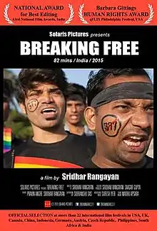 Breaking Free is a 2015 film directed by Sridhar Rangayan and produced by Solaris Pictures. In this documentary, filmmaker and gay activist Sridhar Rangayan embarks on a personal journey to expose the human rights violations faced by the LGBTQ community in India due to a draconian law Section 377 and homophobic social mores of a patriarchal society. The film was selected to be part of the Indian Panorama (non-Fiction) and screened at International Film Festival of India in 2015. [1]