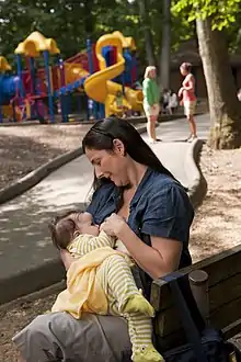 Breastfeeding and mental health is the relationship between postpartum breastfeeding and the mother's and child's mental health. Research indicates breastfeeding has positive effects on the mother's and child's mental health.[1] These benefits include improved mood and stress levels in the mother, lower risk of postpartum depression, enhanced social emotional development in the child, stronger mother-child bonding and more. Given the benefits of breastfeeding, the World Health Organization (WHO), the European Commission for Public Health (ECPH) and the American Academy of Pediatrics (AAP) suggest exclusive breastfeeding for the first six months of life.[1] Despite these suggestions, estimates indicate 70% of mothers breastfeed their child after birth and 13.5% of infants in the United States are exclusively breastfed.[2] Breastfeeding promotion and support for mothers who are experiencing difficulties or early cessation in breastfeeding is considered a health priority.[1]