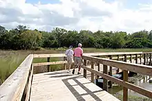 There are 250 square miles (650 km2) of federally protected wildlife refuges.[37] These lands include Merritt Island National Wildlife Refuge, the Canaveral National Seashore, the St. Johns National Wildlife Refuge, the Archie Carr National Wildlife Refuge, several conservation areas managed by the St. Johns River Water Management District, Brevard County's Environmentally Endangered Lands Program Sanctuaries,[38] and lands dedicated by the State as conservation areas.