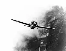 The Buffalos and P-40s carried out air defenses over Rangoon and Mingaladon as well as strafing missions on Japanese airfields.[60] Like Malaya and Singapore, lack of effective early warning systems greatly hampered British and AVG efforts to defend Burma from air raids.[60] Reports of Japanese aircraft performance from the Malayan Campaign prompted Buffalo pilots in Burma to employ different tactics; according to Flight Sergeant Vic Bargh, "come in from above, or at the same level at the very least, then dive away before they got onto you, because if they did get onto you, well, you were shot down".[61] One of the Buffalo's final victories of the Burma Campaign was claimed by Bargh; he found the wreckage of the bomber and had his picture taken with it as proof.[62]