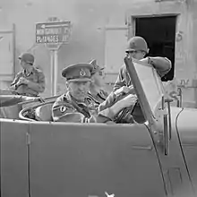 It was a year before Horrocks recovered sufficiently to tell Field Marshal Sir Alan Brooke, the Chief of the Imperial General Staff (CIGS), that he was "very anxious to be given another corps".[79] Restored to the acting rank of lieutenant-general in August 1944,[80] he was sent to France to assume command of XXX Corps during the cataclysm engulfing the trapped German 7th Army and 5th Panzer Army in the Falaise Pocket. Montgomery had been dissatisfied with the performance of the corps and its GOC, Gerard Bucknall, a fellow Middlesex Regiment officer, since the landings in Normandy two months earlier.[81] Horrocks retained control of XXX Corps during the advance through Belgium, taking Brussels, and at one point advanced 250 miles (400 km) in only six days.[82] Supplies were a constant concern; the major French deep-water ports were still in German hands, and Allied supply lines stretched back to the Normandy beaches. Montgomery's 21st Army Group was by now operating 300 miles (480 km) from its ports—twice the distance logistical planners had accounted for—so XXX Corps was diverted towards Antwerp to secure its docks and harbour.[83] The city and port fell to the 11th Armoured Division in early September, but Montgomery halted XXX Corps for resupply short of the wide Albert Canal to the north of the city, which consequently remained in enemy hands.[84] Horrocks regretted this after the war believing that his corps might have advanced another 100 miles (160 km) with the fuel available.[85] Although some doubt this could have been achieved without delays,[83] it is now known that XXX Corps was opposed by only one German division, although Allied forces were unaware of this at the time.[86] The pause allowed the Germans to regroup around the Scheldt River, and by the time the Allies resumed their advance, the First Paratroop Army (General Kurt Student) had arrived and set up strong defensive positions along the opposite side of the canal.[87] The task of breaking the strengthened German line, which stretched from Antwerp to the North Sea along the Scheldt River, would fall to the First Canadian Army in the month-long, costly Battle of the Scheldt.[88] By mid-September, XXX Corps had been diverted again, this time to the east.