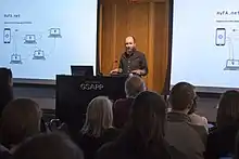 Brian House (born Denver, Colorado) is a new media and sound artist. House's early projects were some of the first examples of the artistic use of location-based media on mobile phones, using text messaging.[1][2] He has also contributed to sonification as an art form[3] and to the critique of big data collection.[4] His work has appeared in numerous exhibitions around the world, including at the Museum of Modern Art, the Museum of Contemporary Art, Ars Electronica, and Transmediale.